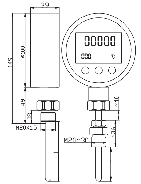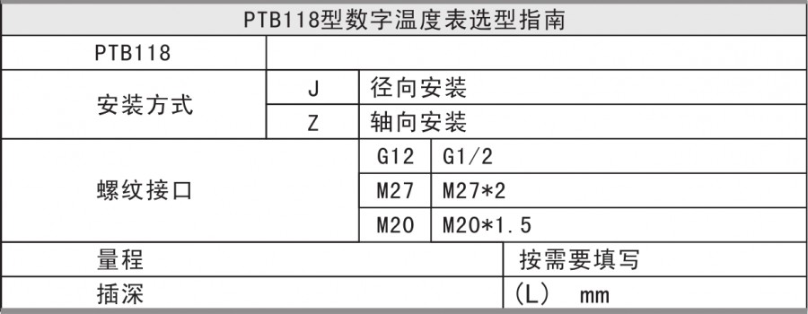 The PTB118 digital temperature meter is an all-electronic structure, powered by a battery, and is easily installed on the ground. Using high-precision PT100, the LCD display shows the actual temperature value.