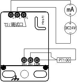 L+:外部供電正; L-:外部供電負; TS:電路板調(diào)試接口